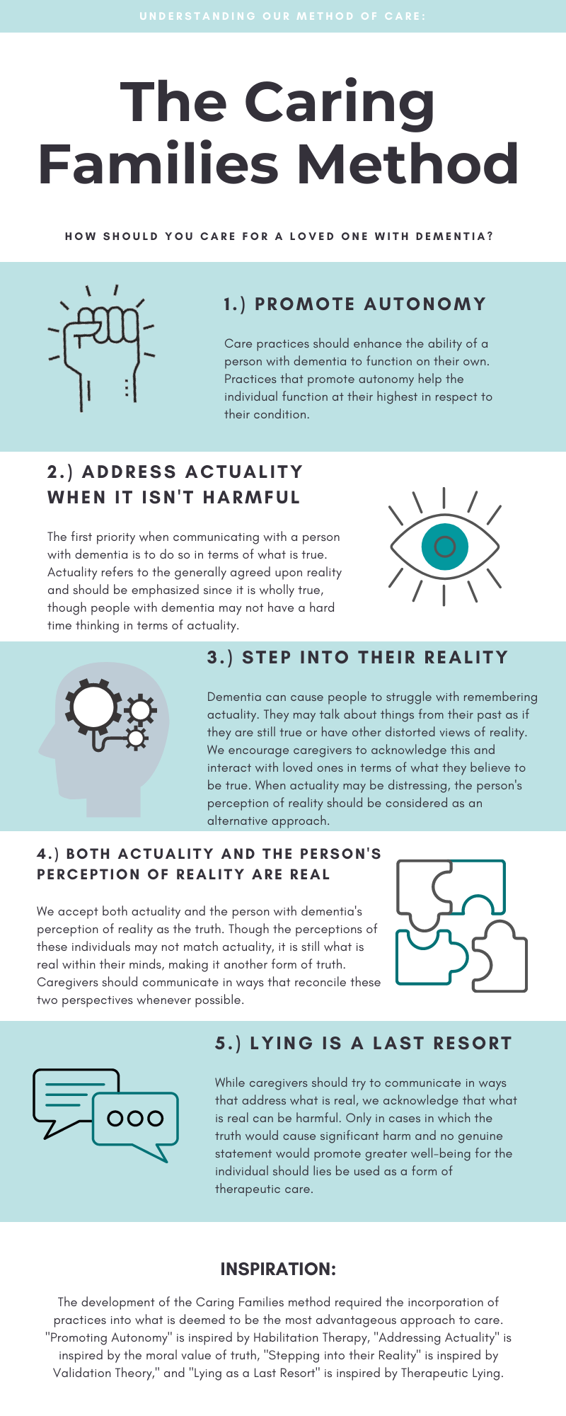Now that you know what we believe, the third and final step to understanding Caring Families is to look through potential scenarios that may arise when caring for a person with dementia. Continue to Step 3.